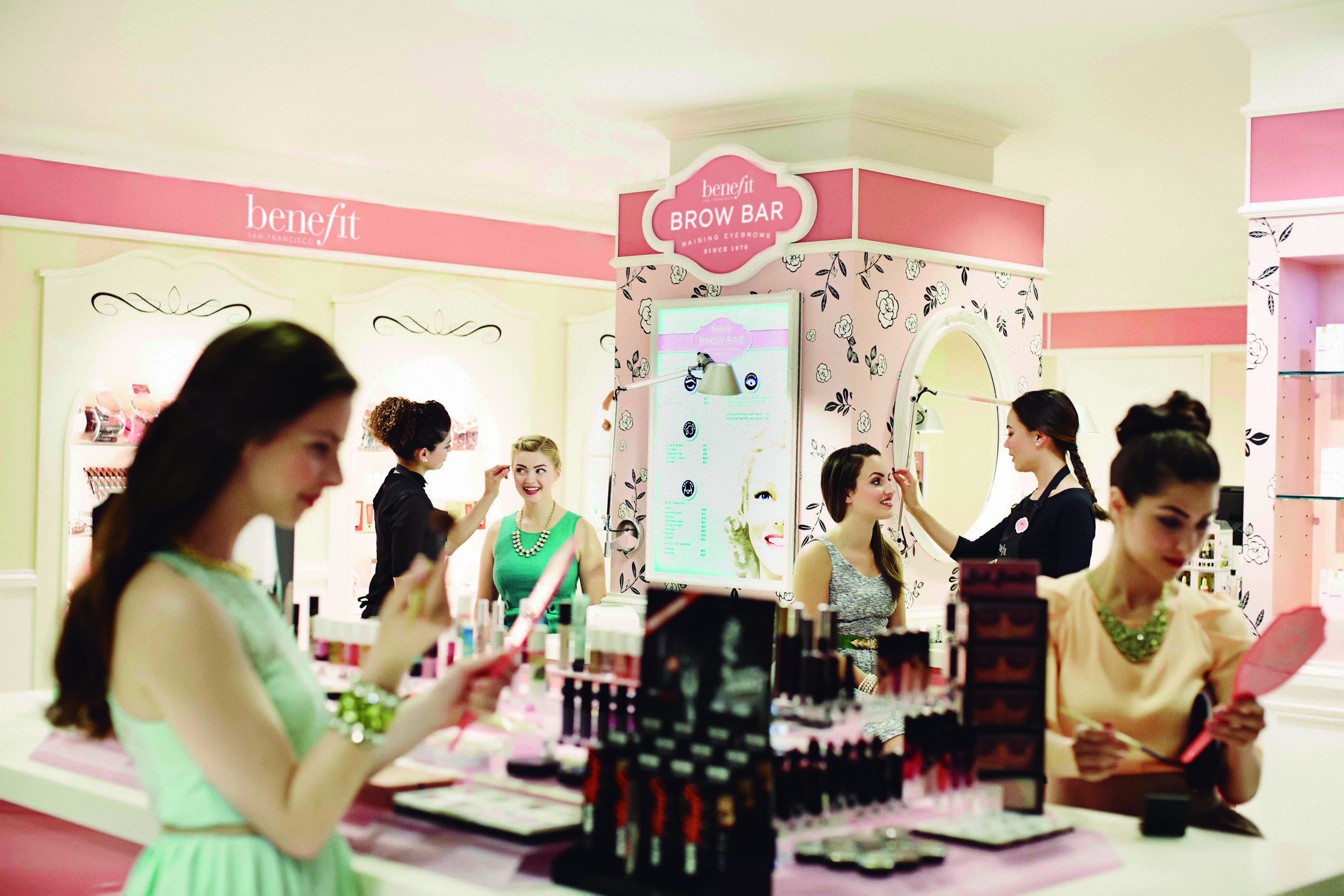 Hay que señalar que el personal con el que cuentan las tiendas de Benefit son profesionales esteticistas y maquilladoras profesionales, con un carácter abierto y cercano a las clientas con el que consiguen que estas pasen un rato divertido. Se podría decir que tienen ciertas aptitudes de interpretación y saben romper la rutina de compra, al imbuirse del ambiente sesentero que inunda la tienda e interactuar con la temática de lanzamientos y promociones puntuales.