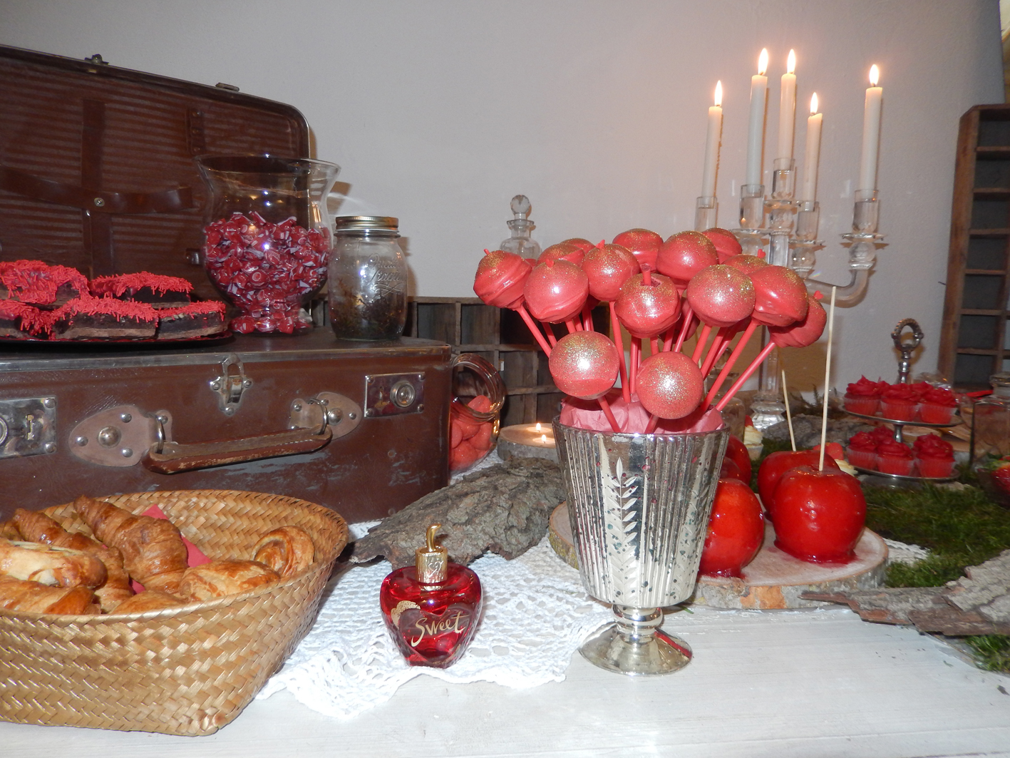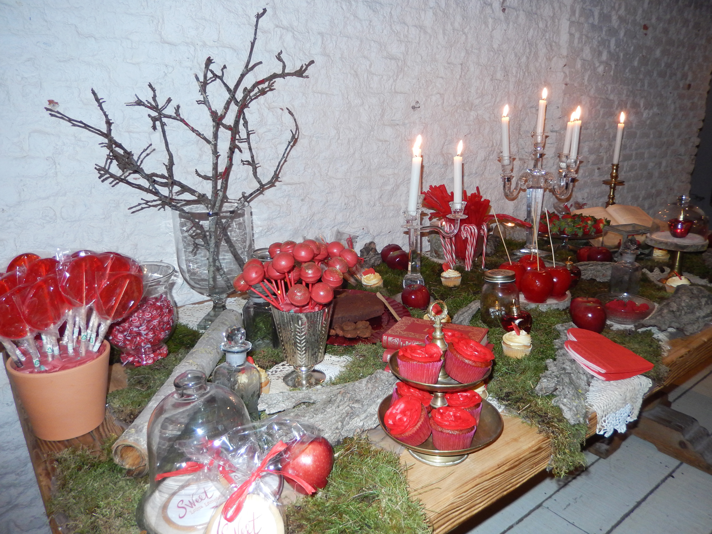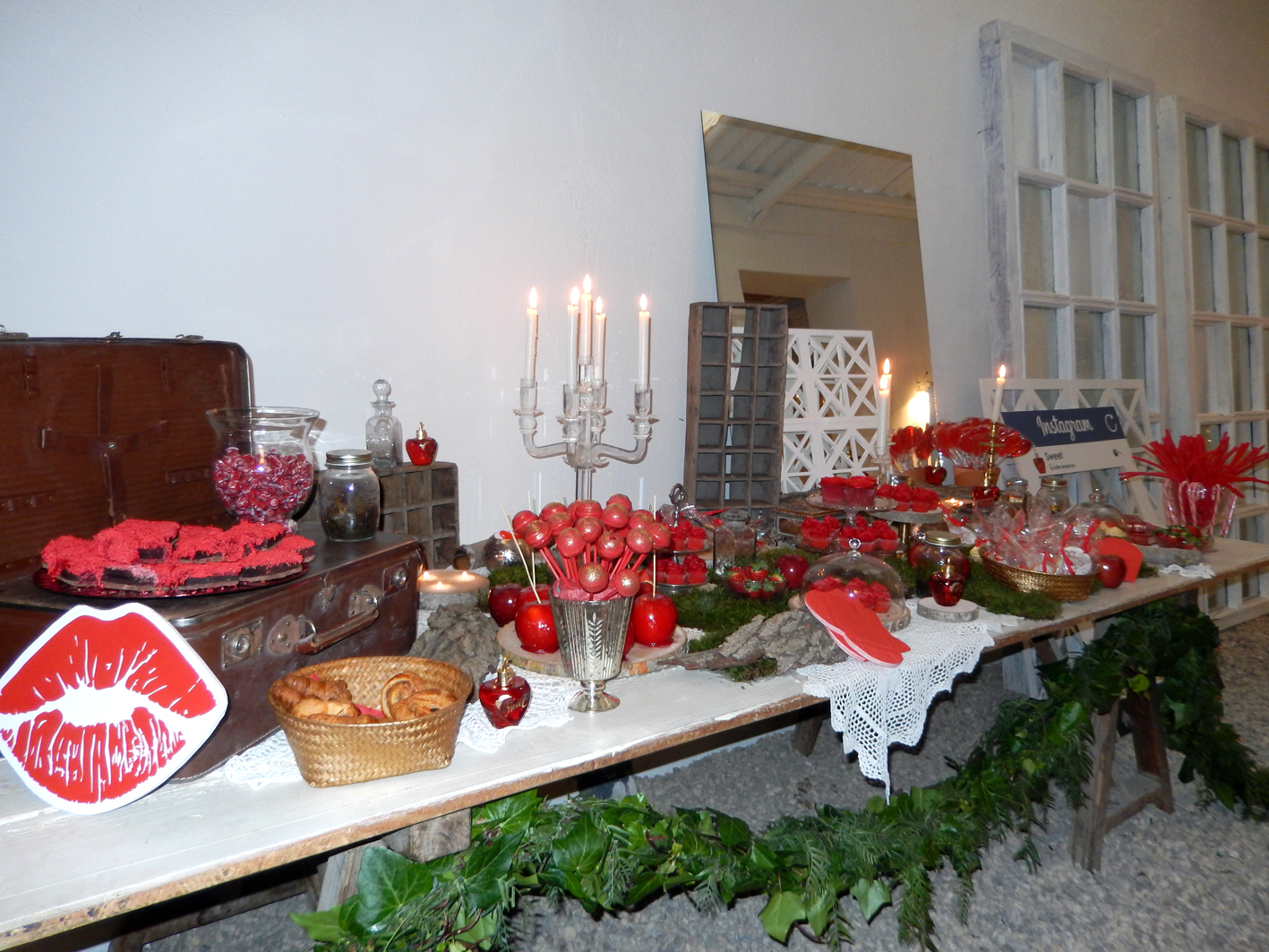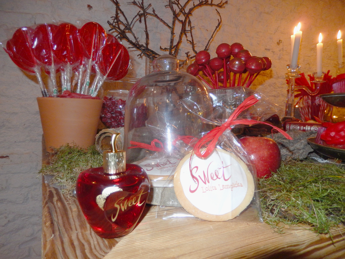 Vestida para la ocasión como un hada de cuento, Maria Macías, directora de comunicación y relaciones públicas, fue la encargada de recibir a la prensa e introducirla en el universo mágico de Sweet en el que el color rojo fue el protagonista. Manzanas de caramelo, regalices, piruletas, cupcakes…, tentaban a los asistentes en una mesa decorada con detalles rústicos y románticos entre los que se escondía la manzana mordida de Sweet.