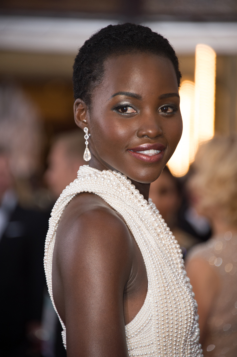 Impresionante, Lupita Nyong’o por su acertado maquillaje y el impresionante vestido de perlas de Calvin Klein Collection.