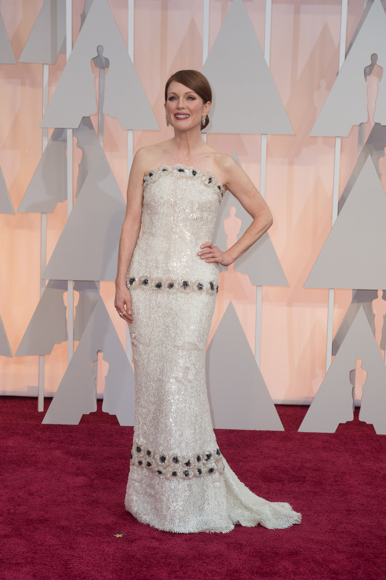 No podíamos pasar por alto a las dos ganadoras de la noche, Julianne Moore, Óscar a la Mejor Actriz, y Patricia Arquette, Óscar a la Mejor Actriz de Reparto. Moore no arriesgó con el look de maquillaje y respetó su nívea piel pecosa que destacó con un toque de colorete y un labial en tono granate. El recogido, un moño bajo estilo bailarina, resultó de lo más favorecedor.