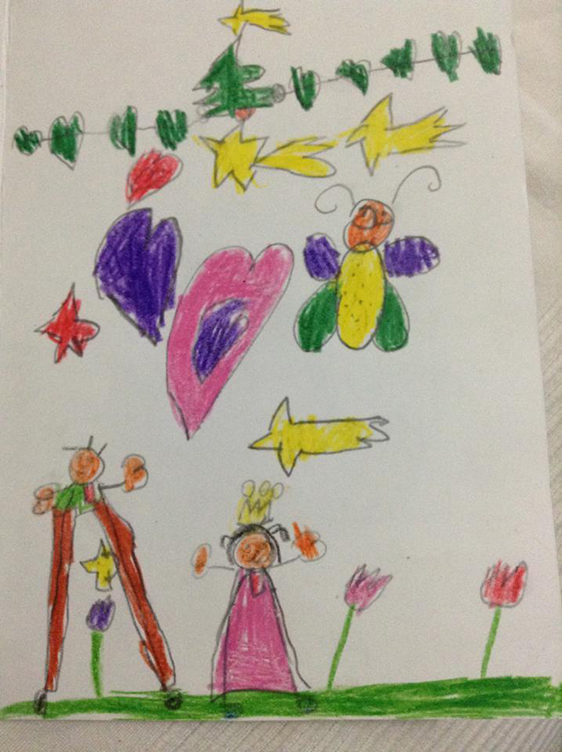 Daniela es pura creatividad y ha hecho esta preciosa composición para felicitar a su papá.A Alejandro le gusta mucho practicar todo tipo de deportes y ya está pensando en el próximo verano… ¡para hacer surf! El dibujo no solo es precioso, sino que encierra un mensaje secreto que solo él conoce y que se refiere a la enredadera… Pero nosotras no lo vamos a desvelar porque lo tiene que descubrir su papá. ¡Felicidades!