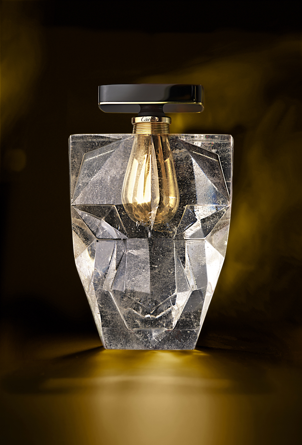 Cartier acentúa el carácter lujoso de la fragancia Extrait La Panthère con un frasco tallado en cristal de roca que atesora en su interior una ampolla de oro maciza donde se alberga el perfume y que se corona con un capuchón de mineral de obsidiana.