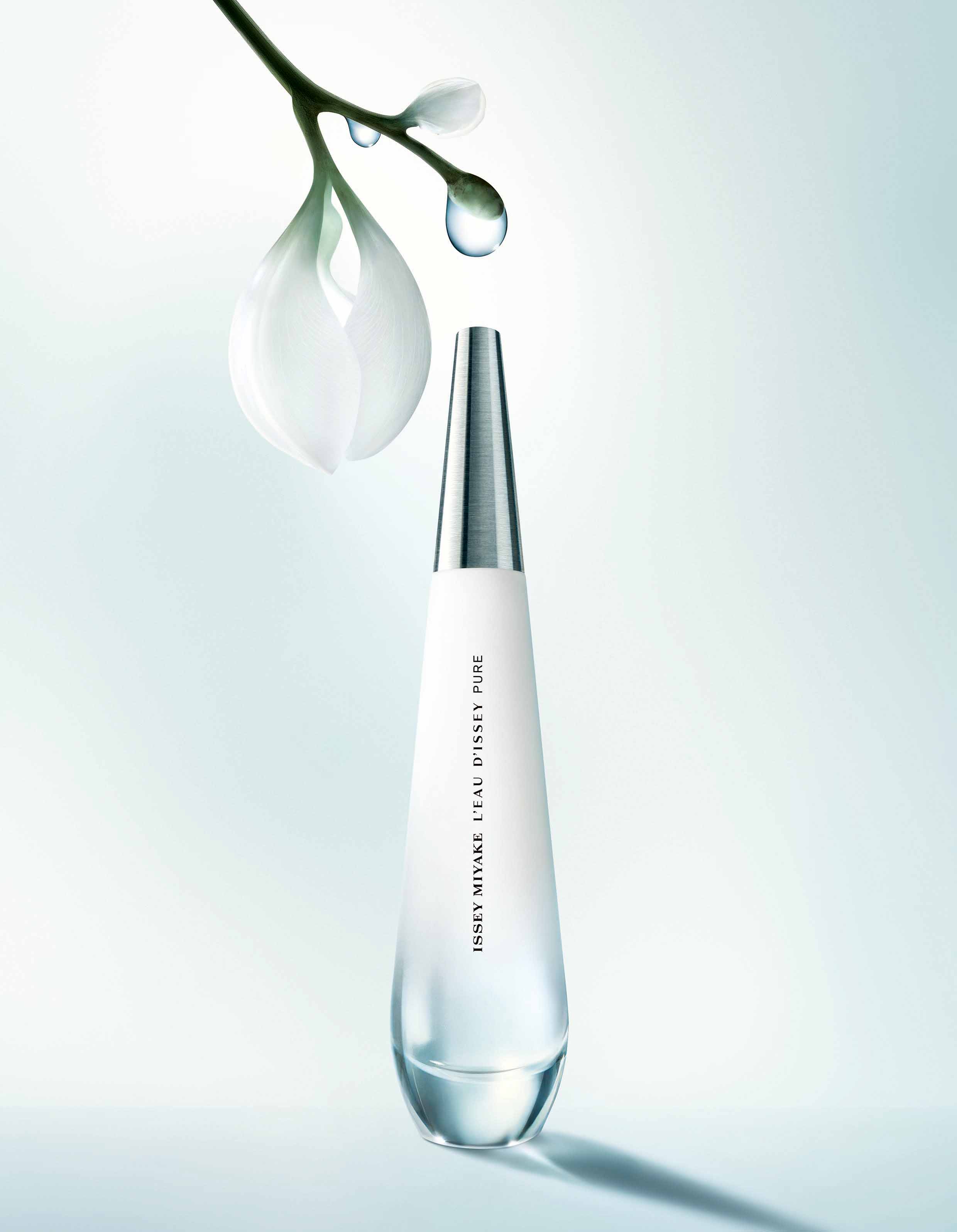 Fuente de vida, el agua cobra especial protagonismo cuando el deshielo del invierno da origen al estallido de la primavera y brota la mejor cara de la naturaleza. Este es el argumento de la versión eau de toilette de L’Eau d’Issey Pure, una fragancia femenina de una sencillez y pureza extremas, cuyo visual publicitario lo dice todo al mostrar una gota que resbala por un pétalo blanco.