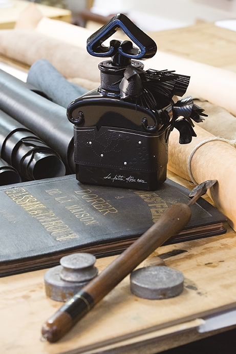 La nueva fragancia de Guerlain, La Petite Robe Noire, se presenta para la ocasión en una versión de coleccionista, con detalles en piel, que han sido realizados por la casa Tasin. El frasco se ha frabricado en la maison Baccarat. Esta es una edición súper exclusiva de la que sólo se han hecho 18 frascos.