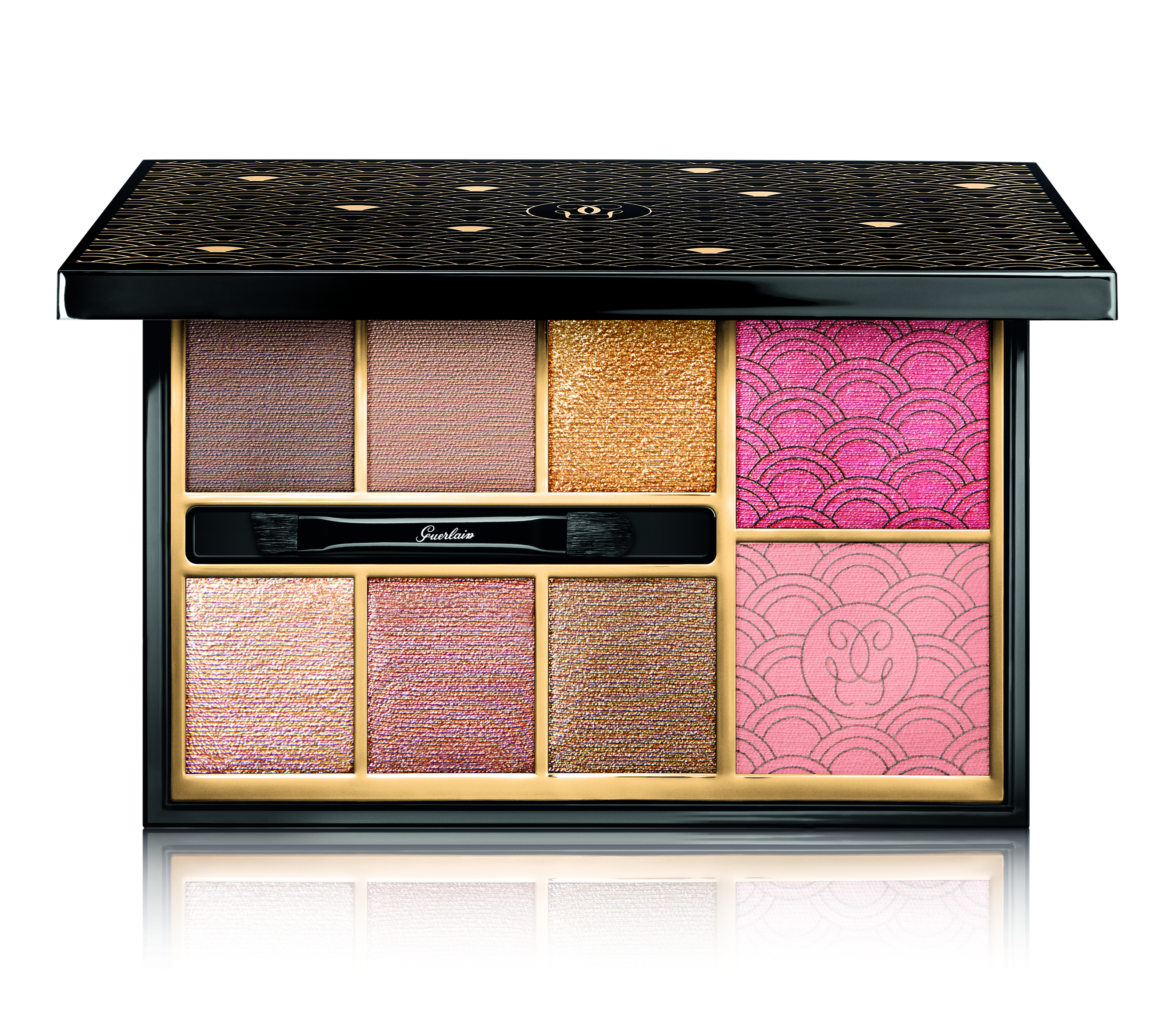 La paleta de sombras Gold es una de las piezas estrella de la colección de Navidad. El estuche es una caja lacada en negro y decorada con palmeras doradas de estilo Art Deco. En su interior encontramos productos para maquillar rostro, ojos, cejas y labios. Su textura wet & dry permite intensificar los colores al emplear una brocha húmeda.
