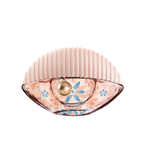 Flores en tonos rosas y azul dotan de un espíritu alegre y optimista a este perfume afrutado y floral, con notas de pera, iris y flor de almendro.