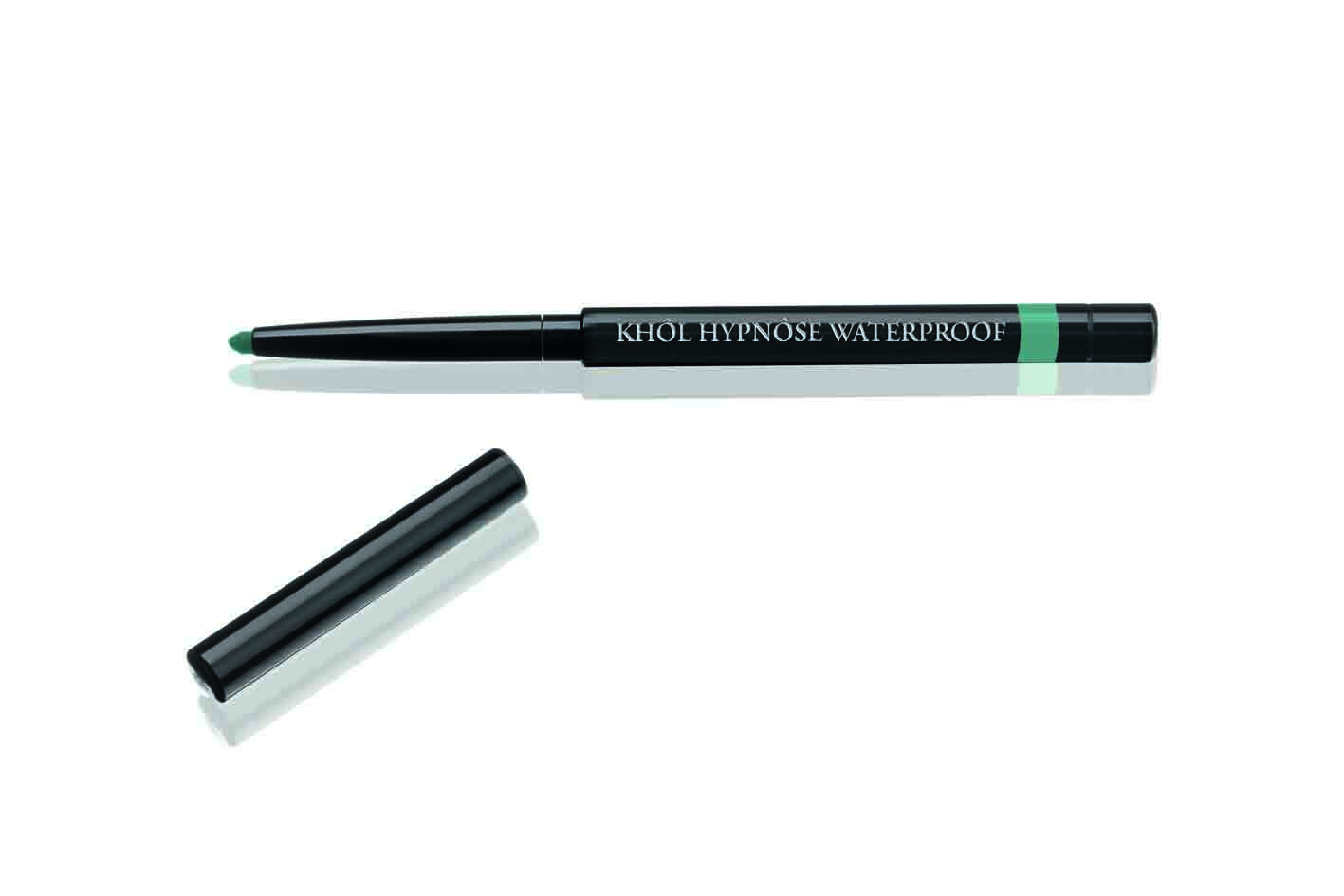 Los ojos se subrayan con un lápiz khôl en tonos pop: Hypnôse Khôl Vert Tuileries y Gris Rivoli.
