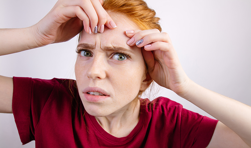 La frente, sobre todo la parte de la glabela (cerca de el entrecejo) es una zona rica en glándulas sebáceas, por lo que es un sitio frecuentemente afectado por el acné. Determinadas sustancias presentes en productos cosméticos, como champús, podrían actuar como irritantes y empeorar un acné preexistente, pero es poco probable que, por sí solas, desencadenen un brote de acné. Lo que hay que hacer para minimizar esta posibilidad es aclararnos bien la cara tras usar productos capilares, y emplear una crema hidratante adecuada (textura en gel, fluida, poco oclusiva y poco espesa) tras la ducha.