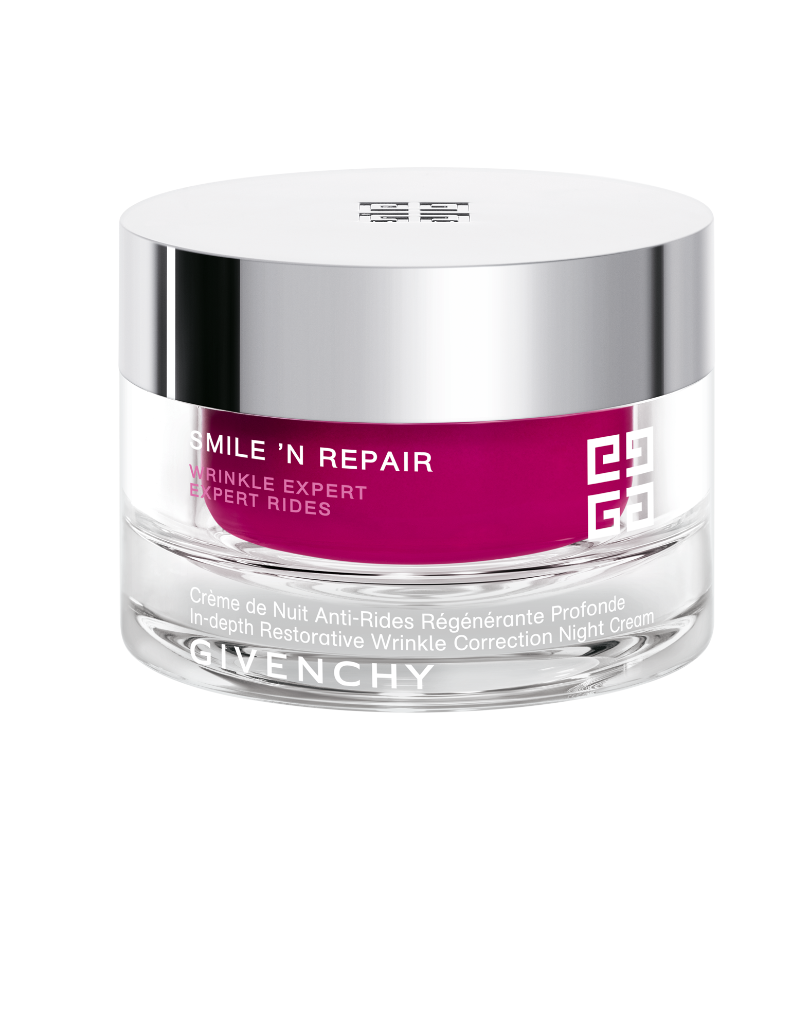 La línea Smile’N Repair Wrinkle Expert de Givenchy crece con Crema de Noche Antiarrugas Restauración Profunda (104,50 €), el primer tratamiento de noche que reestructura la piel con cada movimiento del rostro, gracias al complejo MotionCorrect y al extracto de siempreviva. El complejo, compuesto por esferas de polifenoles de uva con extracto de sauce blanco, reactiva el mecanismo natural de producción de HSP27, que repara los fibroblastos presentes en la dermis y los queratinocitos de la epidermis. Y el extracto de siempreviva combate los daños del estrés, estimulando la producción de colágeno para rellenar las arrugas y reestructurando la epidermis.