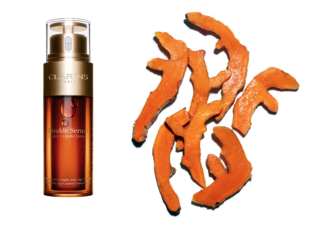 La fórmula del actual Double Serum no es la misma que la de hace 30 años. Clarins la ha reformulado con nuevos ingredientes vegetales, que suman 21 activos en total. El ingrediente estrella de la nueva generación de Double Sérum es la cúrcuma.