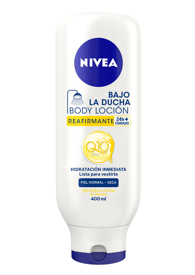 La nueva loción Bajo la Ducha Reafirmante es fruto de cinco años de investigación, que han dado lugar a una fórmula que aúna la coenzima Q10 con microperlas de masaje, por lo que no solo proporciona hidratación a la piel, sino que también ofrece un cuidado reafirmante.