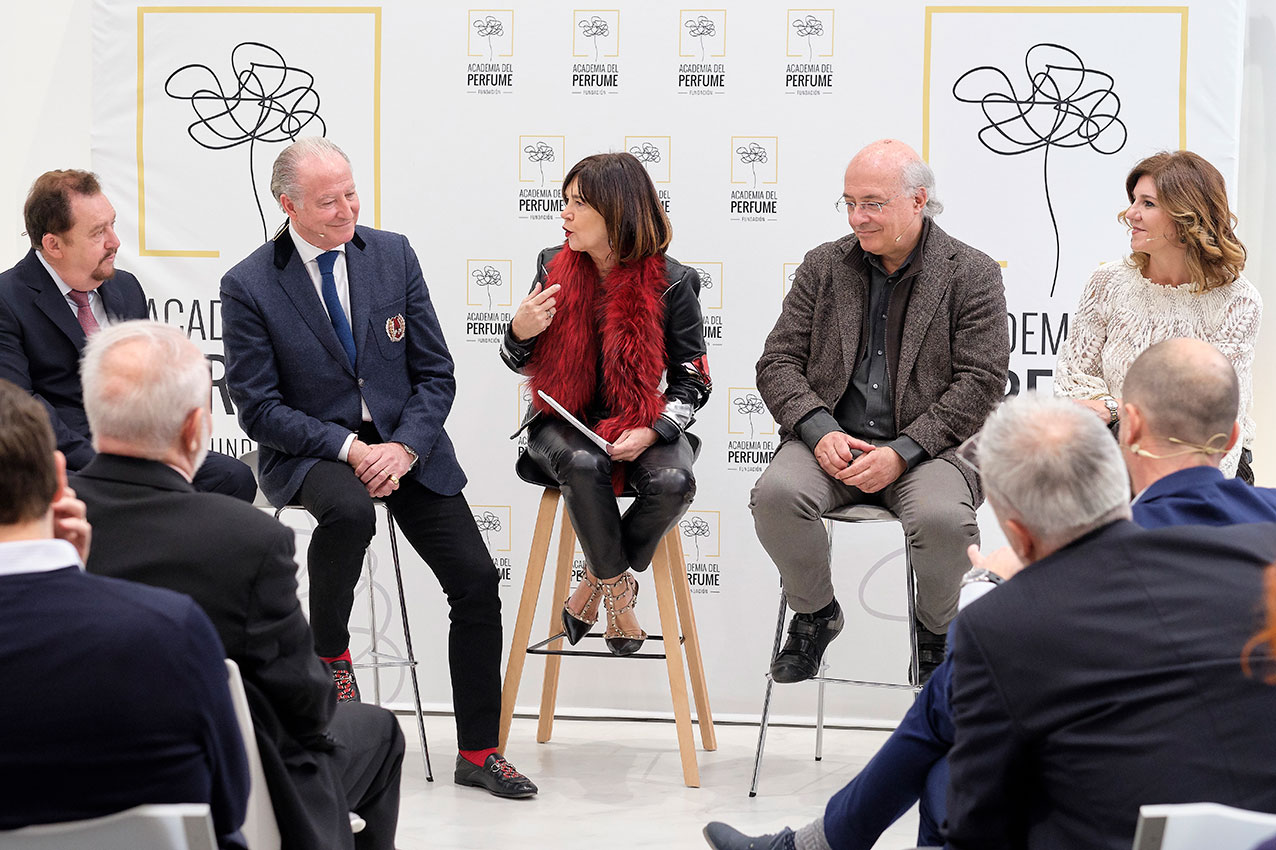 Una primera tanda formada por los maestros Alberto Morillas, Emilio Valeros y Agustí Vidal, junto con la directora ejecutiva de la Academia del Perfume, Val Díez, debatió sobre la vocación del perfumista, cómo la descubrieron, cómo se formaron y las vías existentes para llegar a ser nariz. El segundo turno corrió a cargo de los perfumistas Carlos Benaïm, Olivier Cresp, Rodrigo Flores-Roux y Jordi Fernández (estos tres últimos nuevas incorporaciones) quienes comentaron el honor que supone ser integrante de la Academia del Perfume y de la responsabilidad que sienten para divulgar la cultura en torno al perfume.