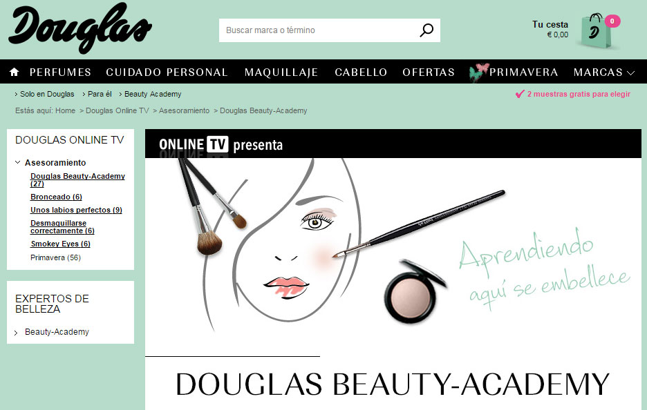 La web también dispone de la sección Beauty Academy, en la que se pueden consultar consejos y tutoriales para conseguir desde los looks más sofisticados hasta aprender a desmaquillarse correctamente.