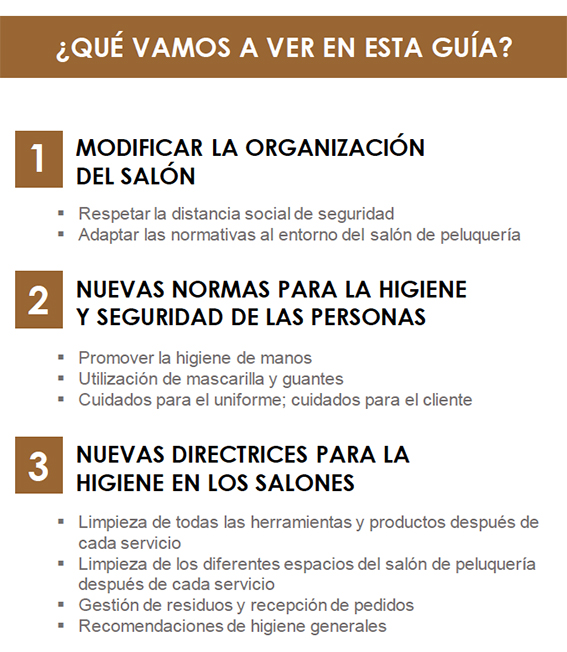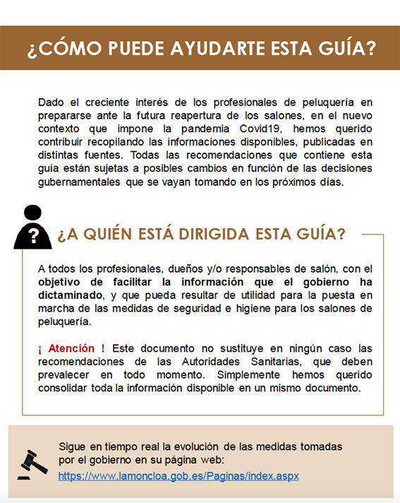 Además, se incluyen recomendaciones de limpieza, higiene y materiales que serán necesarios a partir de ahora en los salones.